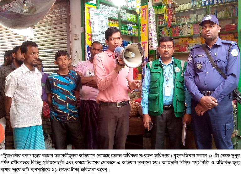 কলাপাড়া(পটুয়াখালী)প্রতিনিধি : পটুয়াখালীর কলাপাড়ায় বাজার তদারকীমূলক অভিযানে নেমেছে ভোক্তা অধিকার সংরক... বিস্তারিত